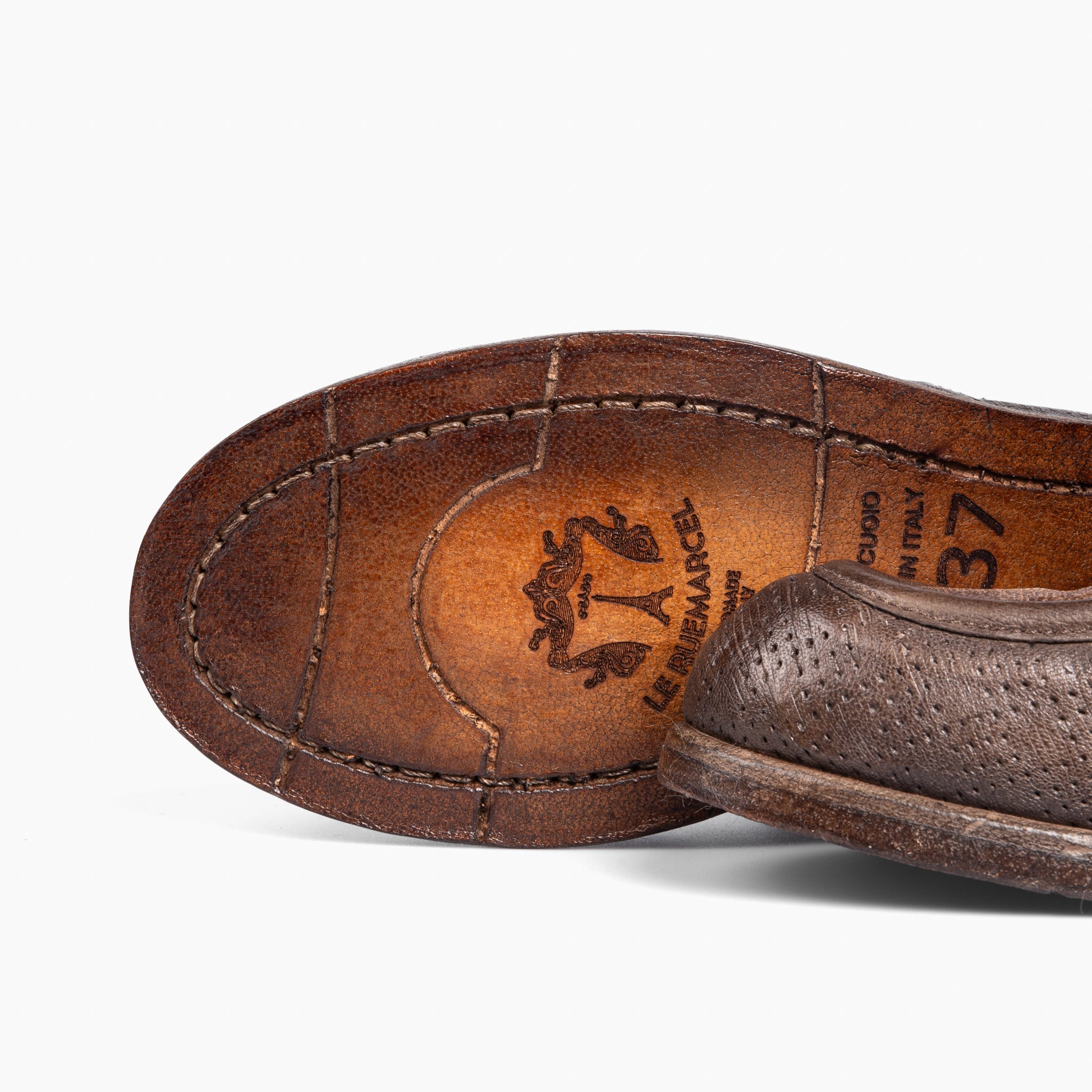 - Customised leather sole with injected rubber point